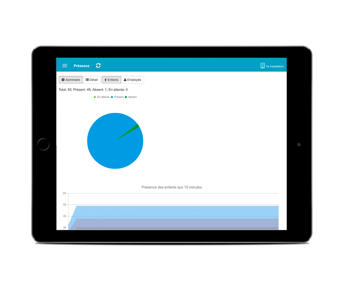 • Statistiques des présences présentées sous forme de graphique ou numérique