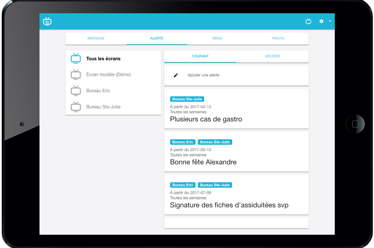 Annoncer des messages du jour et des avis n’a jamais été aussi simple ! Vos messages défileront sur l’écran selon la période de votre choix.